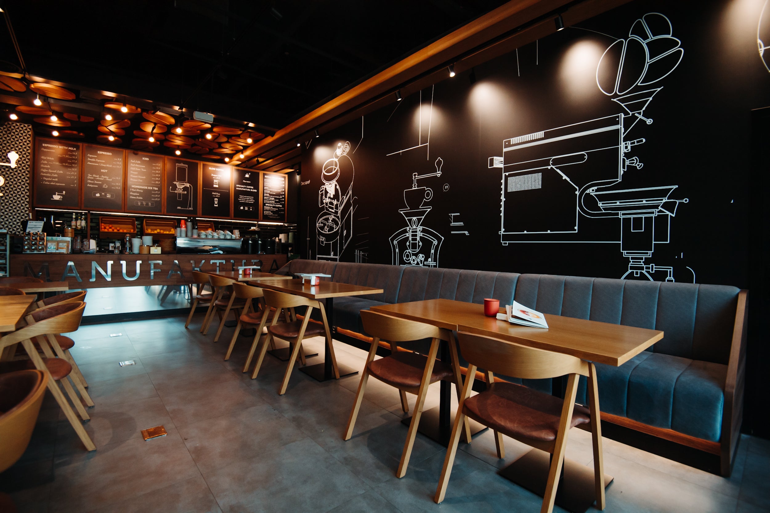 Manufaktura Plaza este un proiect HoReCa dezvoltat într-un cadru comercial cu flux constant de vizitatori, unde Masara a realizat mobilierul custom și elementele integrate, adaptate cerințelor operaționale ale locației. Amenajarea urmărește claritatea funcțională și o expresie vizuală coerentă, în linie cu identitatea Manufaktura.