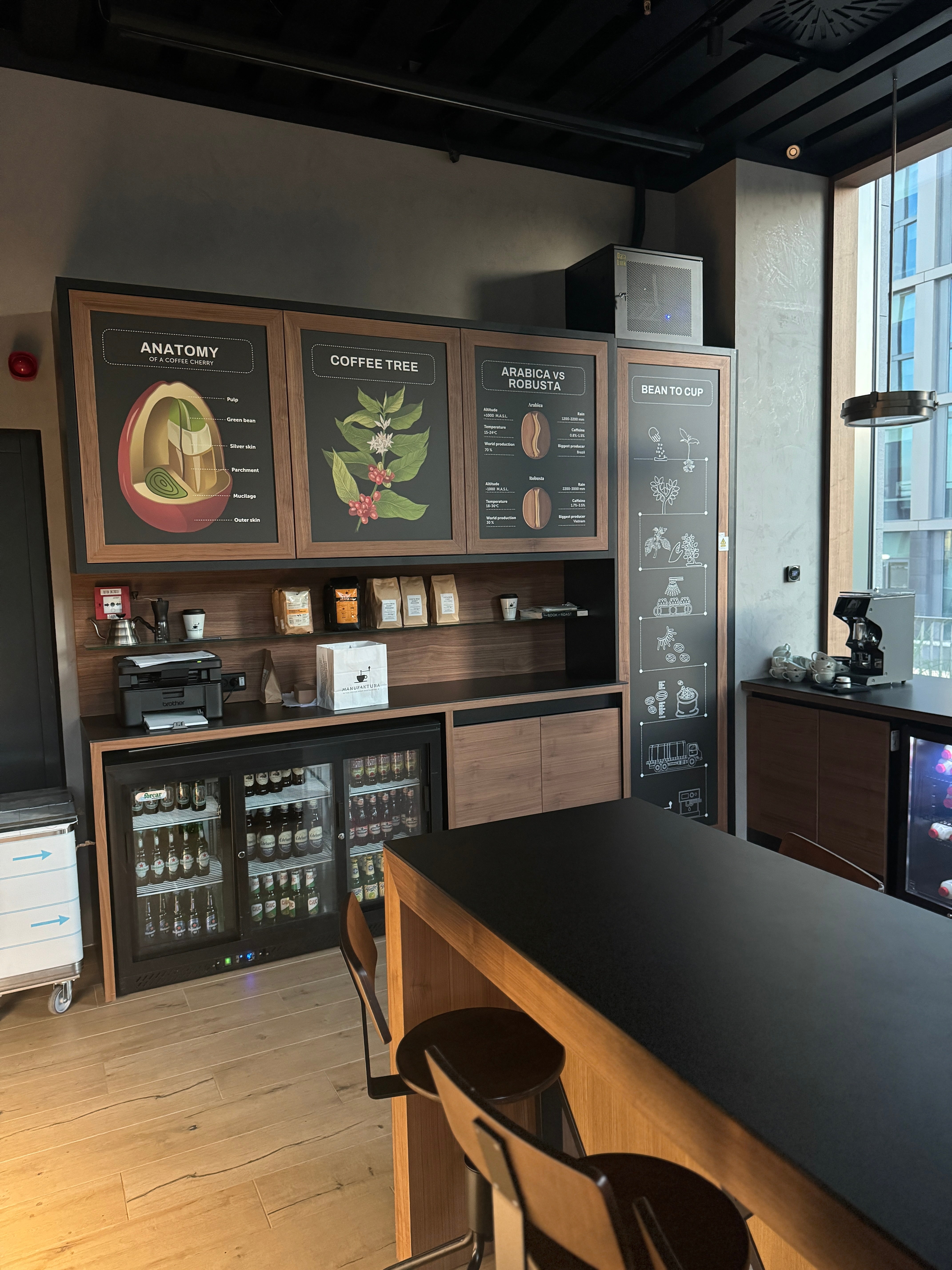 Manufaktura U Center este un proiect realizat într-un context urban contemporan, unde amenajarea interioară a fost gândită pentru a susține un flux constant de clienți, într-un spațiu cu arhitectură clară și funcțiuni bine definite. Masara a realizat mobilierul custom și elementele integrate, adaptate cerințelor specifice unei cafenele amplasate într-o zonă de business.